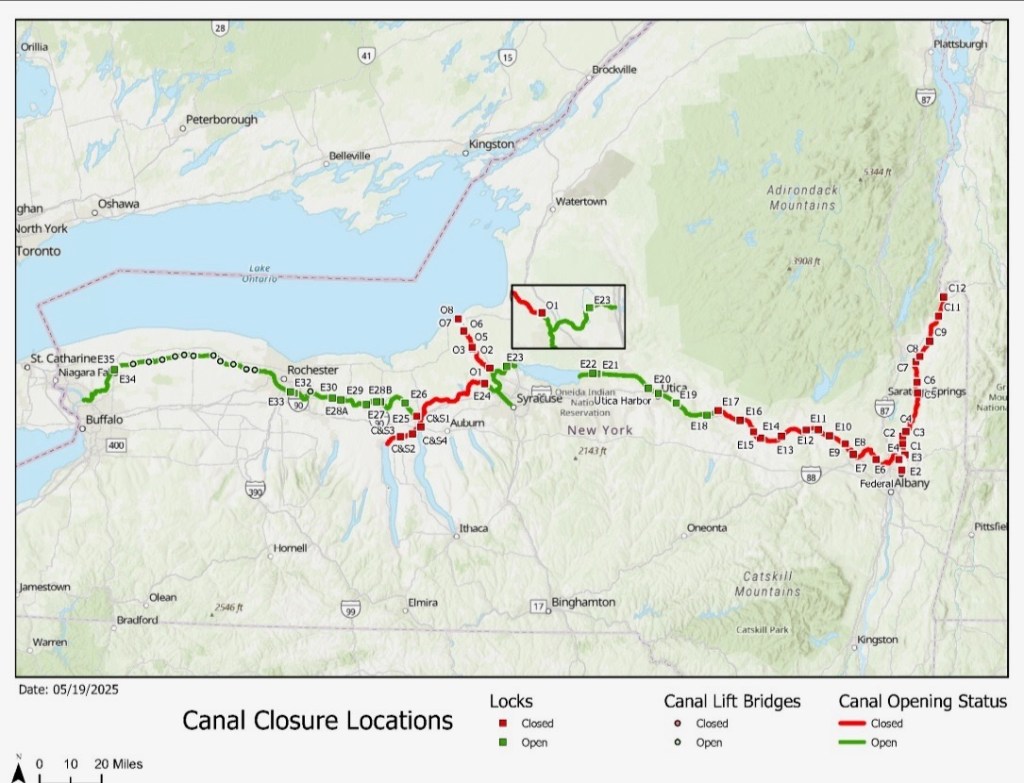 Yesterday, we learned that the delay in the opening of the Erie Canal will last a few weeks. So we are returning to Baltimore for a few days and will return to enter the Erie Canal in early June.