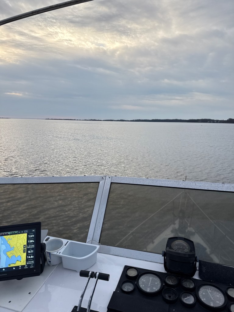 We stayed for two days, anticipating a challenging run down the Delaware Bay to Cape May. We departed in the dark around 5:30 am to hit the high tide at the top of the bay and had a rather bumpy ride down the 60 miles to South Jersey Marina at Cape May, New Jersey.