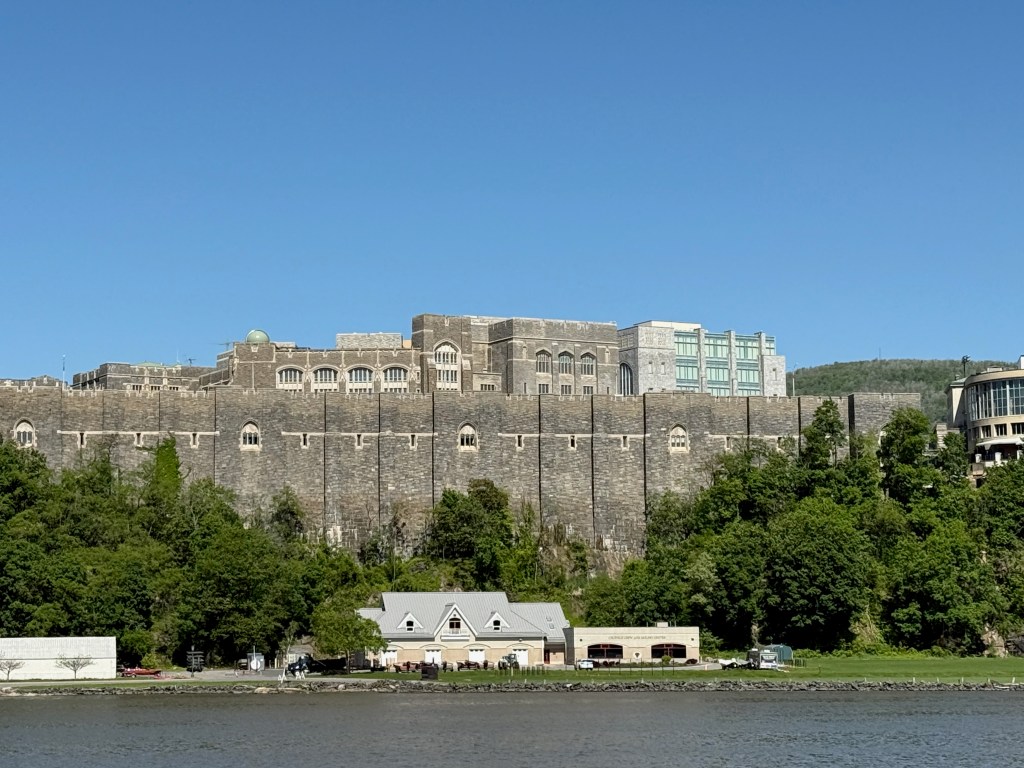 We passed by the Vanderbilt mansion and West Point on our way here. There was a wonderful transition from the urban monuments to the accomplishments of men to the serenity and power of nature herself as we moved north on the river.