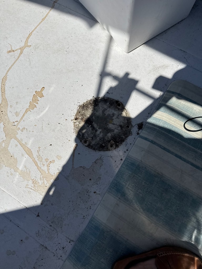 The weather gods were not kind. The waves were three- to four-feet high in swells and coming at us on the port quarter and a little confused. Occasionally, there would be a five- or even six-foot wave that would hit us and roll under the boat. Without the stabilizers in the water (taken down to pass under bridges), we could do little but hold on, staying on autopilot, and keep moving. Then, one particularly big wave hit us just wrong and Hervey’s chair (which sits on a pedestal on the bridge) pulled out of the bridge deck and down he went. Nothing hurt but his pride. We continued on!