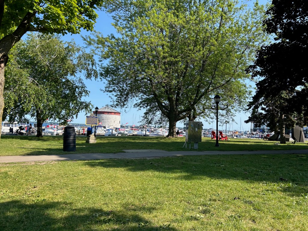 We arrived in the lovely port of Kingston, Ontario CANADA, just before 2 pm, none the worse for wear. The seas calmed down considerably once we got in the lee of the peninsula to the northwest and we docked easily, checked in with customs, and went out for a late lunch. We HAD to come here, since we had spent so much time in Kingston, NY, and found this northern version to be as charming as its southern neighbor. Hervey’s “people” are from a region of North Carolina settled by Scots, many of whom had pledged themselves in 1745 to never bear arms against the King. When the American Revolution came, some held to that promise and emigrated to Canada. He kept commenting on seeing familiar-ish faces on the street as we walked by. “That young woman bears a strong likeness to my grandmother!”