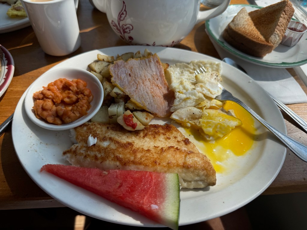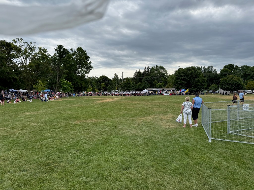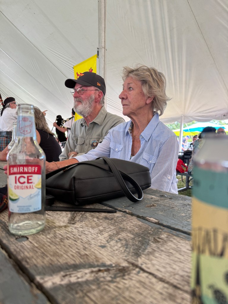 And Orillia did not disappoint! The park just north of the marina was hosting a Scottish Festival and Hervey went over to see what was going on. Before you know it, he had made friends with several couples who shared his Scottish heritage (Lindsay and McNair). The music and energy were terrific and he brought back 24 butter tarts for the freezer. We had breakfast the next morning (Sunday) at the Canadian Legion with more peameal bacon (like Canadian bacon with a slight cornmeal crust) and a great conversation with a local member who was also a farmer. Civility in discussing sensitive issues is prevalent and we talked for an hour after breakfast. Then, one of the couples who Hervey had met at the Scottish Fair the day before (A mixed marriage: she from Dundee and he from London!) came in and another lively discussion commenced.