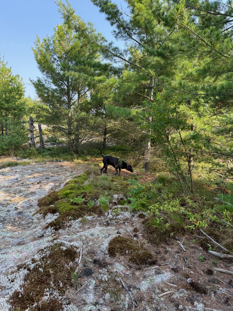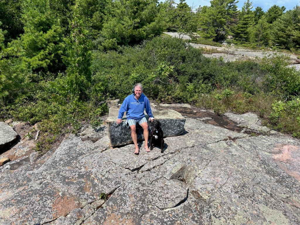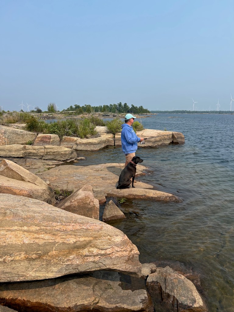 With all of the drama of the first day behind us, we relaxed into our mooring and tried fishing (with no luck on the first attempt). Duke has enjoyed the freedom of limitless (and leash-less) exploration and we are cooking nourishing meals and sleeping late (no AC needed!) We’ll stay here for a few days and then move up towards Killarney (imagine white quartz mountains and azure clear lakes). Hervey was here on a canoeing expedition fifteen years ago and has fond memories of the place.