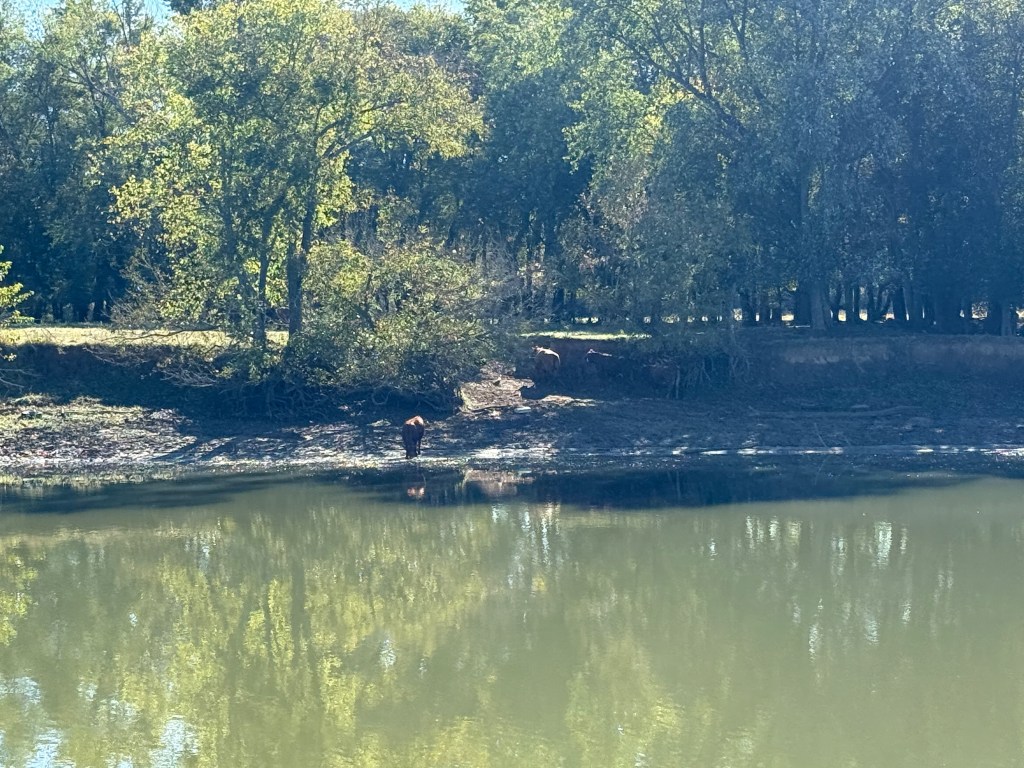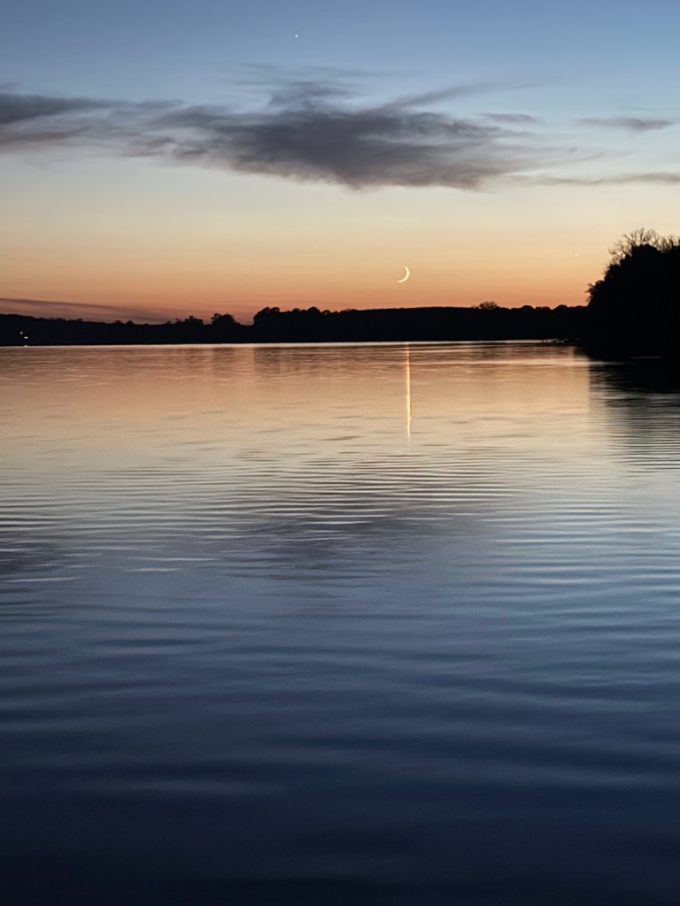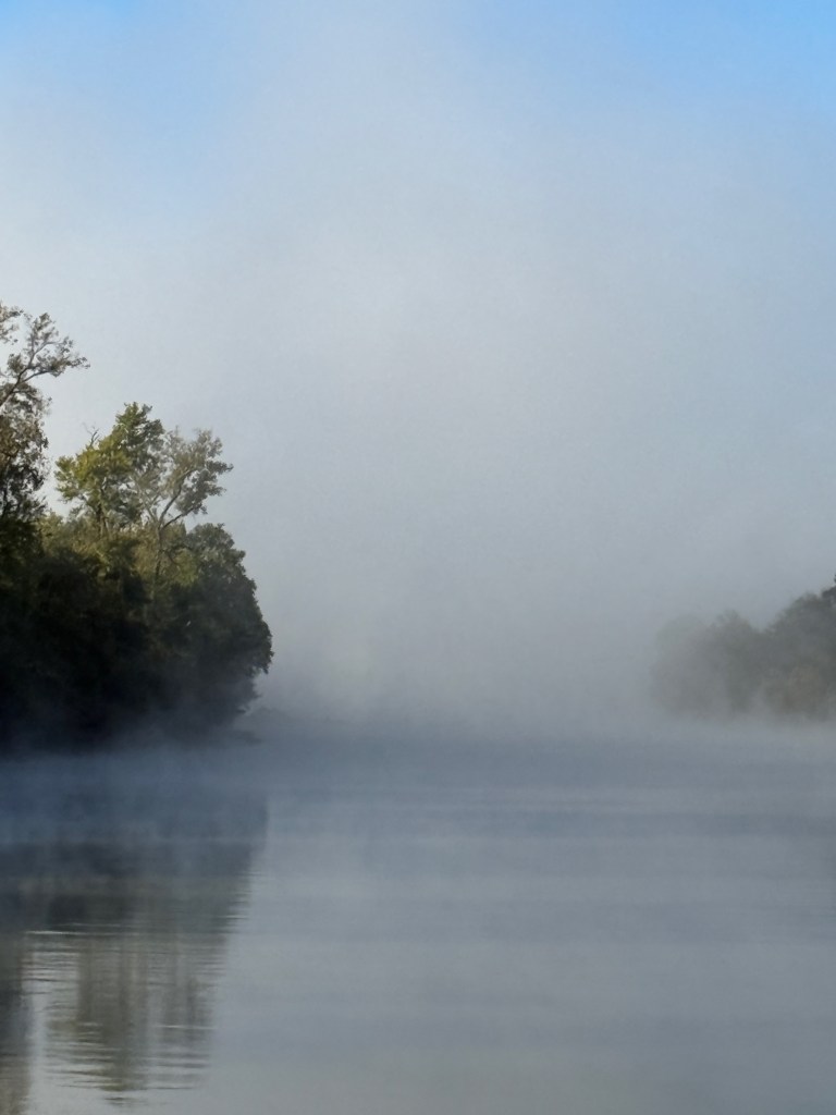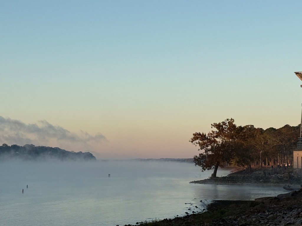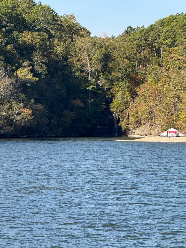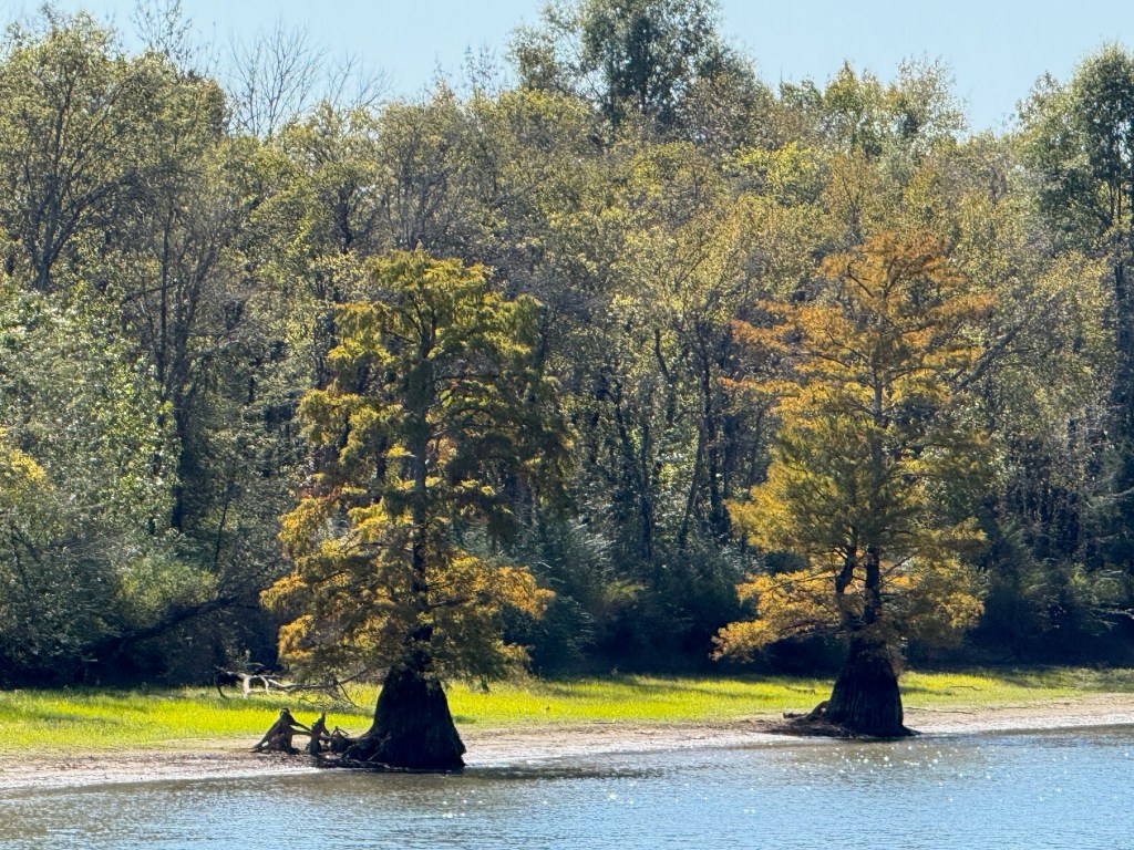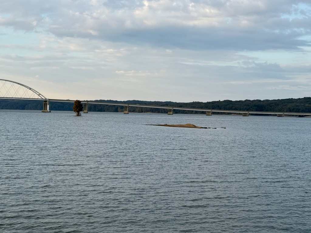 They finished the work at around 11:00 am and we decided to quickly take off and head to the Kentucky Lake and the Tennessee river. Our goal was to head south and we ran the 40 miles to Paris Landing state park that afternoon, October 22. The next day, we were up before dawn and heading south through Tennessee, covering nearly the entire north/south breadth of the state in an 11 hour, 83 mile run to Clifton, TN. Along the way, we went past both Jackson and Wallace cemeteries, important names among our family “outlaws”. The grain elevators at the flooded town of Danville, TN were a reminder of the great displacement of towns and families that was part of the Tennessee Valley Authority (TVA) projects that contained flooding, brought hydropower, and created these enormous recreation lakes along our route.