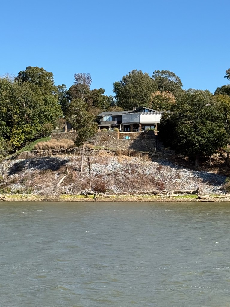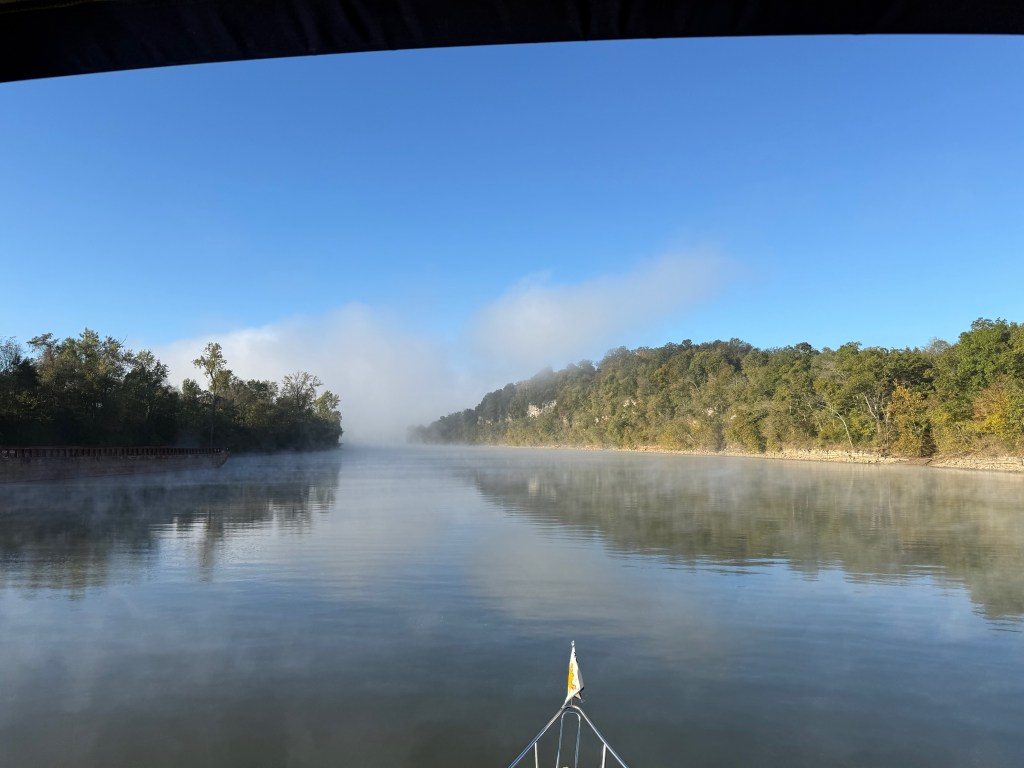 It was good to be back on Bluebird and moving again. Lake Barkley was beautiful and benign as we travelled that first afternoon to our anchorage. The Kentucky State Prison was not the first one we had seen (the other was just south of St. Louis) and we could only image the stories that existed within its walls. After that contemplation of karma and the richness of life, we proceeded to run aground as we entered the inlet before our anchorage of the night. Hervey dove down to the engine room to check the strainers and then returned to the bridge and powered us through to deeper water on the other side of the sandbar.