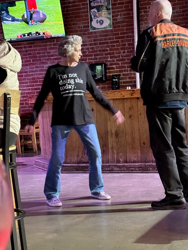 We went out with other loopers and danced at FloBama, a local music venue and restaurant. And Hervey danced with everyone — and Kitty too!