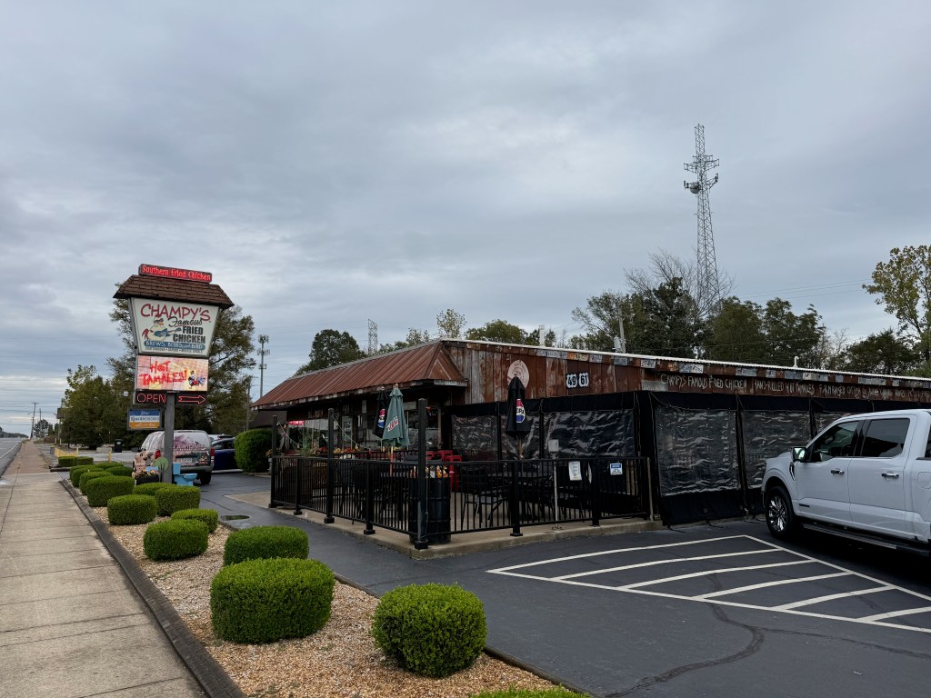 Success at last! We found Muscle Shoals to be a fantastic music destination and a great food town! Hervey is addicted to fried chicken. It is his culinary weakness and, unfortunately, is not on any diet regime he could find. So we found Champy’s Fried chicken (https://champyschicken.com) which rivaled the best chicken of his youth! This small regional chain has locations throughout the South! He bought a t-shirt and had a conversation with the owner. Amazing place!