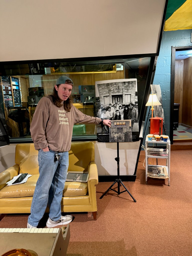 The studio is still actively recording in the evenings and the analog equipment is still in place, although they move everything to digital after recording. All the original instruments are there and are still being used. And the stories of the “Swampers”, the session band that owned the Muscle Shoals studio and played for all these giants for forty years, were so fun to hear.