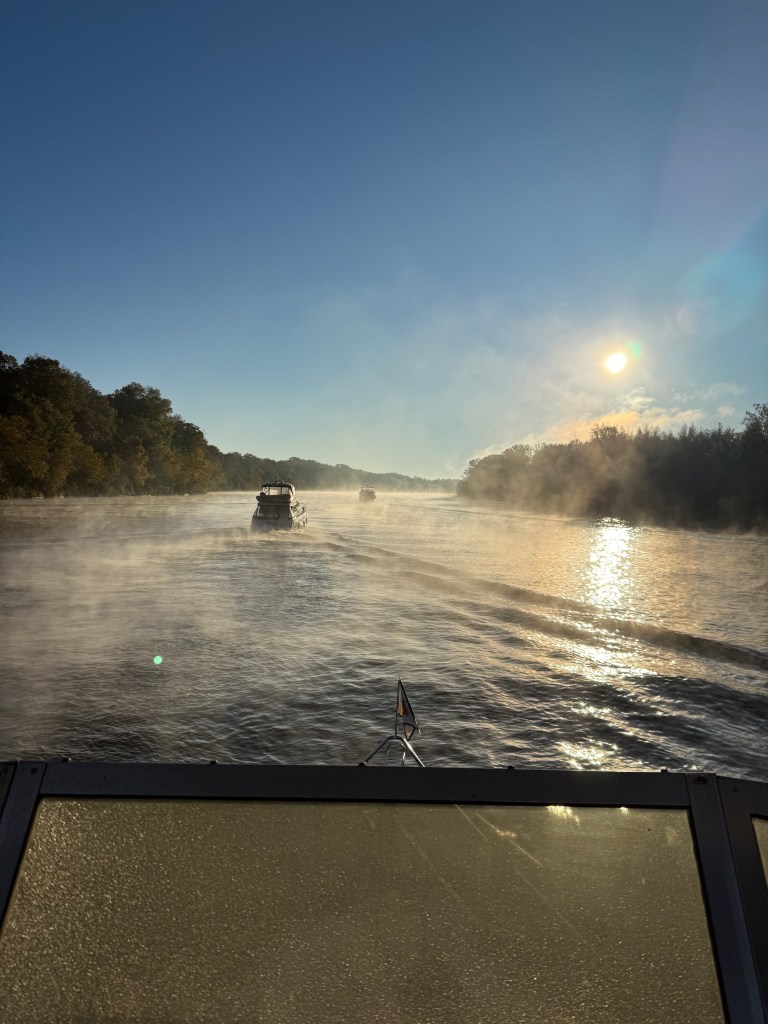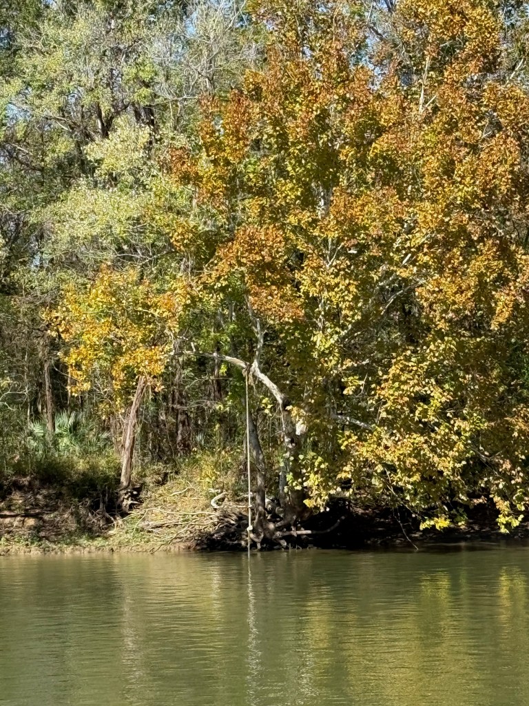 These two days were extraordinary! We traveled 100 miles or more and anchored out in one of the most beautiful places on the trip! We watched a fellow looper stick their nose in the entrance to the Sumter Recreation Area boat ramp and quickly back out. Hervey checked with them and they found it too shallow and scary for them. Hervey checked his charts and guidebooks and made his way in with no problems other than some mud spinning up. The anchorage was deep and, even though we had no generator, we had learned how to manage through this situation with a combination of running the main engines ongoing to bed early (which we do anyway — sometimes as early as 7:30!) It was a magical place and we had it all to ourselves for the night and morning.