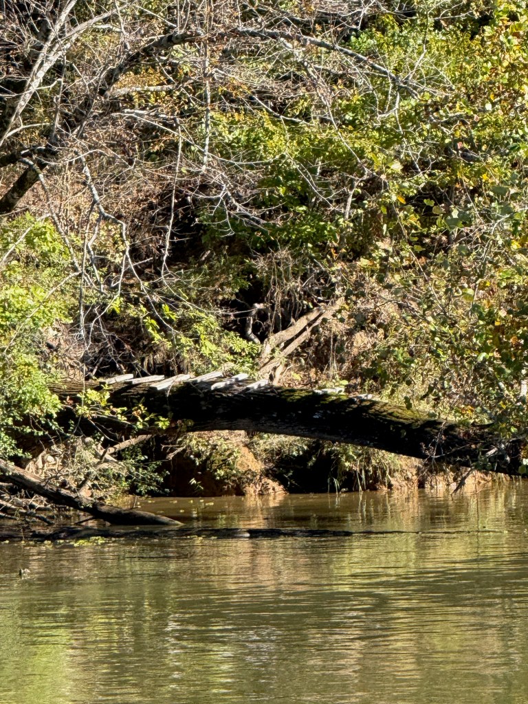 We were headed to Demopolis, Alabama as the Tombigbee Waterway crossed back into Alabama from Mississippi. The river had become a winding, serpentine thing with large oxbow curves and swamps and bald cypress everywhere. One of our fellow loopers had seen alligators in this section, and we kept a sharp eye out for both snakes and ‘gators. But they both eluded us, for a time…