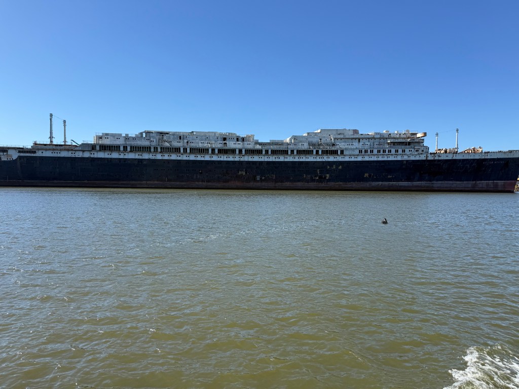We passed the USS United States which had been moored in Philadelphia until last spring when it was moved down the east coast and around Key West to Mobile Bay. It is destined to become an artificial reef, providing habitat for sea creatures and recreation opportunities for divers. She was a great old lady from an era that has largely passed and Bluebird slated her as we made our way into the salty, choppy water of Mobile Bay to our marina.